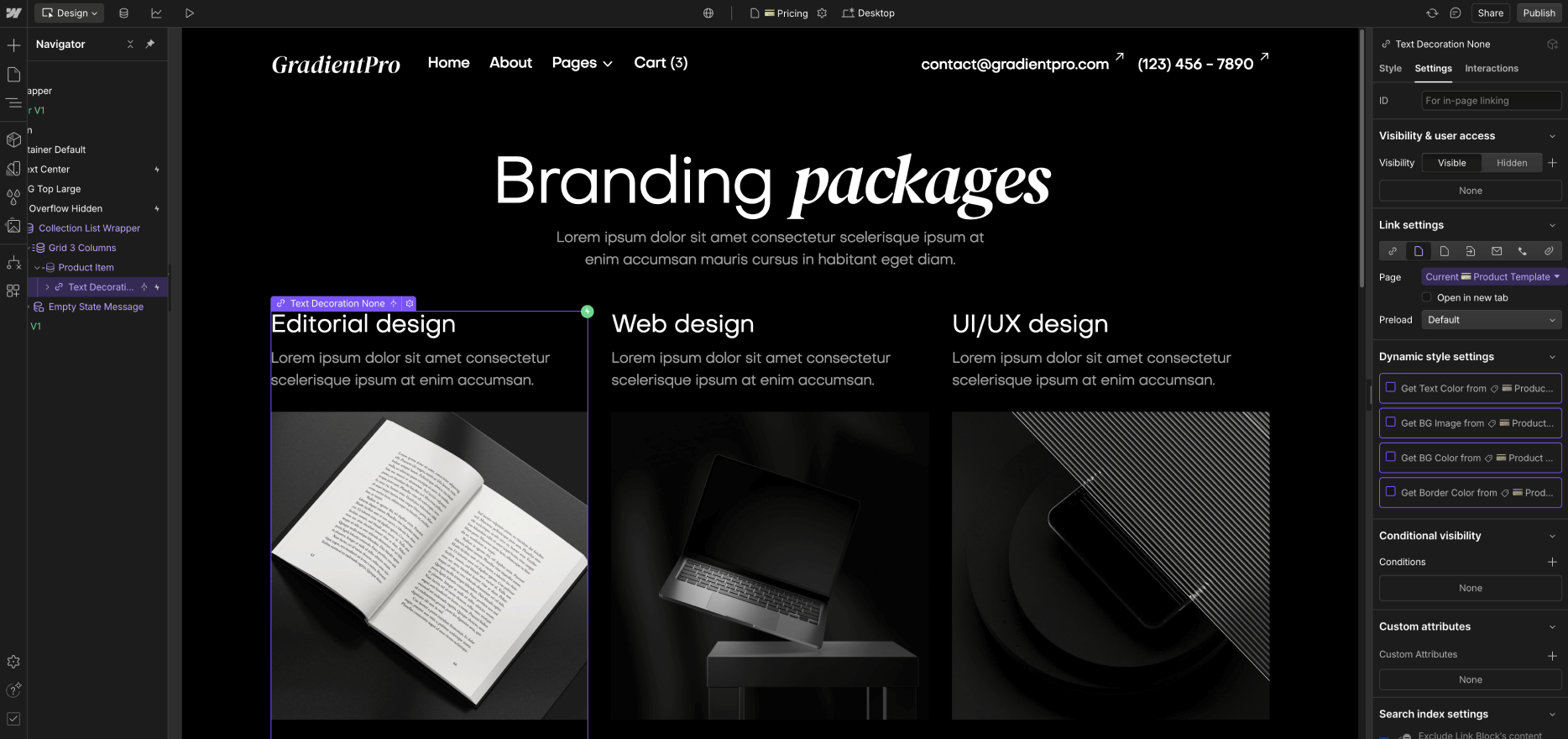 As you could see above, GradientPro was built on Webflow using the best practices to make it very easy for you to edit the template and customize it to your needs.