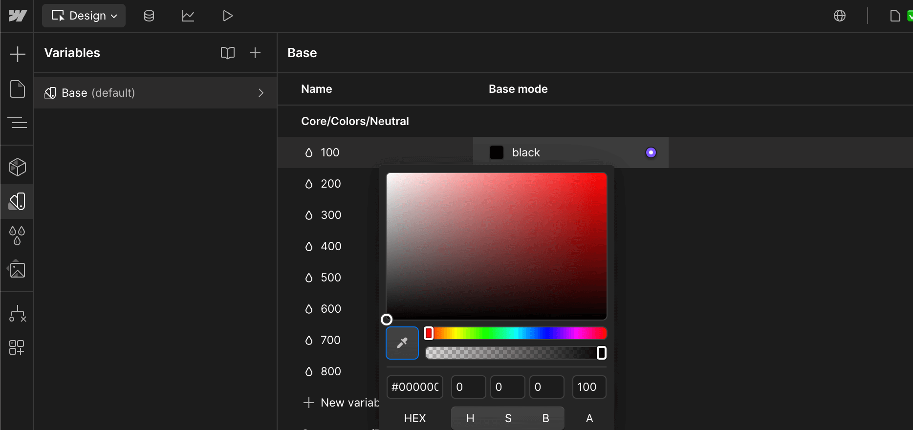 In order to do this, you just need to go to the Variables tab in the left sidebar, then scroll to Colors, and if you double click the color, you will be able to edit them to be updated site-wide to any color needed.